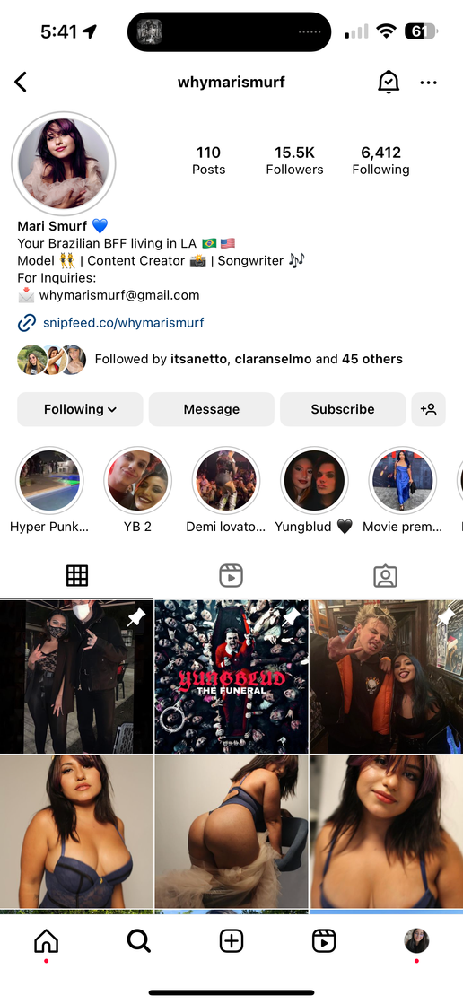 My name is Mariana Budal, as know as Mari Smurf. I'm 25 years old living my best life in Los Angeles CA. I am a Brazilian Model, Content Creator/Influencer, Makeup artist, songwriter and aspirant singer! I have a very artistic background.
